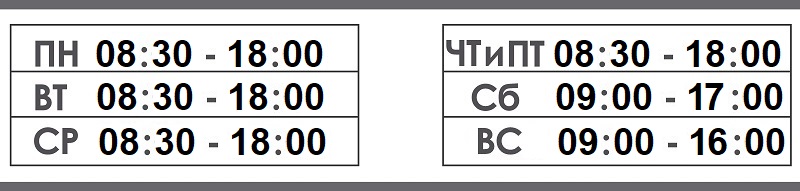 Информация о возможных временных изменениях в режиме работы размещается по адресу работы организации (Ленинградская область, г. Кировск, ул. Молодежная, д. 12), а также на нашей странице "ВКОНТАКТЕ". Об изменениях в режиме работы уточняйте по телефону и другим каналам связи.